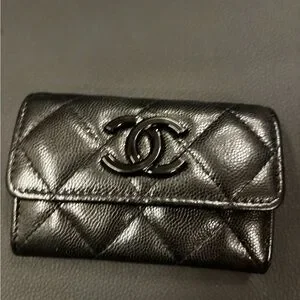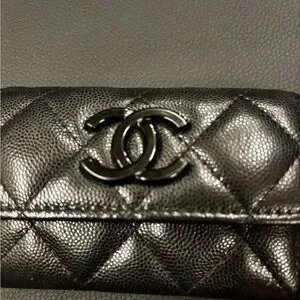 This is one of Chanel’s most sought-after small leather goods styles — durable caviar leather, classic quilting, and the iconic CC turn-lock detail in a rare all-black hardware finish.