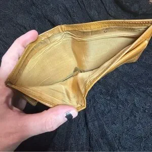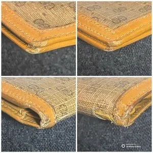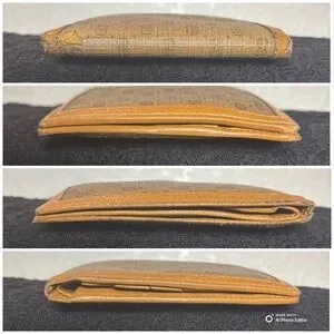 This wallet shows heavy vintage wear, consistent with age and long-term use. There is a small section of canvas missing near one corner (cosmetic only). The corners, structure, and snap closure remain intact, and the wallet is fully functional.