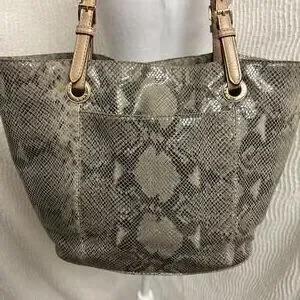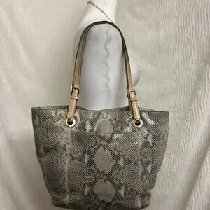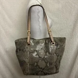 Michael Kors Tan Snakeskin Embossed Tote Bag Structured Everyday Handbag