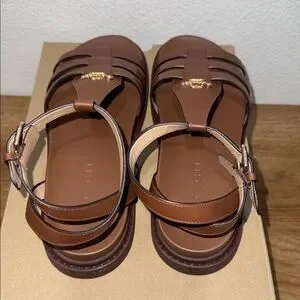 Chic Coach sandals in tan leather. Ideal for casual outings. Stylish and comfortable. Franny leather sandal.