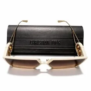 Dior Cream and Gold Square Sunglasses with Case