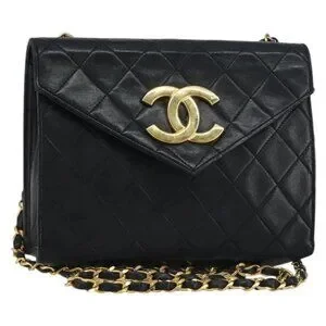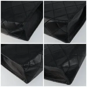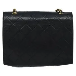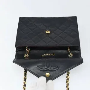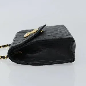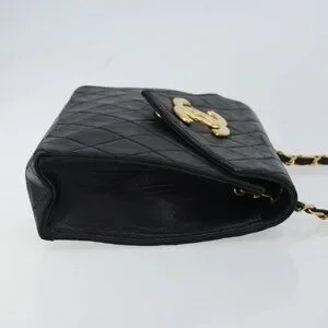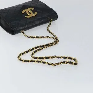 CHANEL Matelasse Chain Shoulder Bag Lamb Skin Black Gold CC Auth 158840