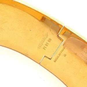 HERMES Clic Clac H Gold Black White Hardware Patent Leather Bangle