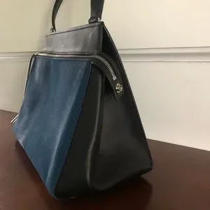 AUTHENTIC CELINE RARE NWT Medium Edge Satchel Blue Ponyhair & Black Leather