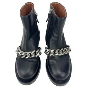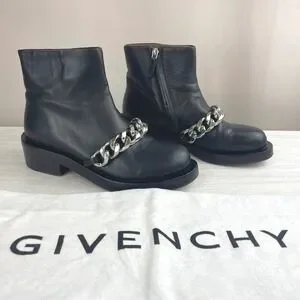 GIVENCHY Laura Leather Chain Moto Ankle Zip Boot (36) with Dust Bag