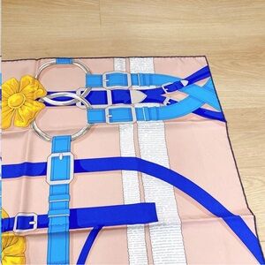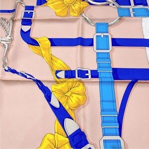 Elegant Hermes scarf featuring blue and yellow floral design. Perfect accessory for any outfit.