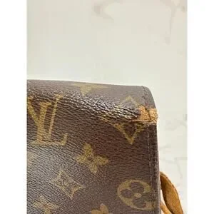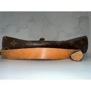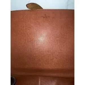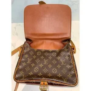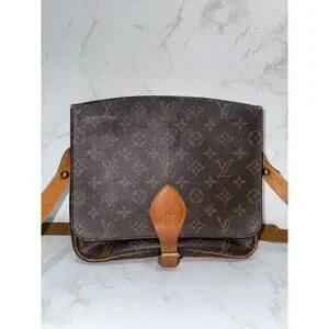 This classic Louis Vuitton Cartouchiere features the iconic monogram canvas with natural vachetta leather trim and adjustable strap. The flap closure with brass buckle provides secure storage, while the spacious interior is lined with brown leather. The vachetta leather shows a natural honey patina, adding character to this timeless piece.