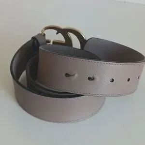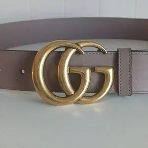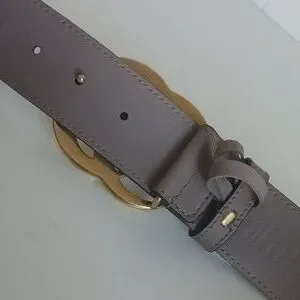 Gucci Tan W Gold Double GG Buckle Leather Belt.