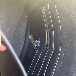 Sleek black leather design. Secure clasp closure. Ideal for elegant outings.