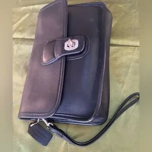 Vintage Coach Black Leather Clutch Wristlet J80-9832