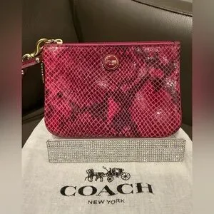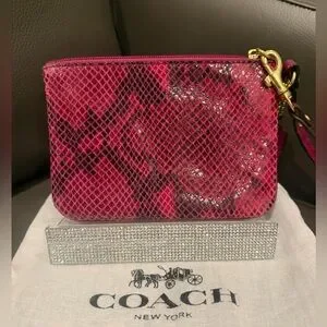 COACH Raspberry Python Leather Wristlet with Dusty