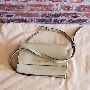 Michael Kors Jet Set Saffiano Leather 3in1 Crossbody Handbag Purse Light Grey