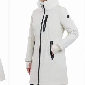 Stay stylish and protected in this Michael Kors bone white anorak raincoat, perfect for rainy or chilly days.