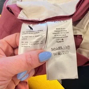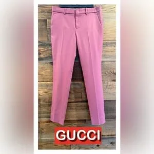 Amazing condition pants from Gucci! Gorgeous pinky-purple color in a luxury blend of Cashmere Wool. Size 40, fits me as a size 6 @ 5’6 so listed as such. These r just a little too low cut for my ( mid rise) preference. Refer to all pics & measurements below. NB, two teeny dots on front near pocket on one side. I purchased them this way, didn’t work on me so I’ve not dry cleaned, they may get the dots out