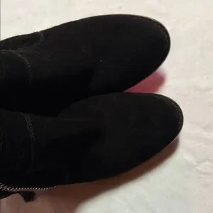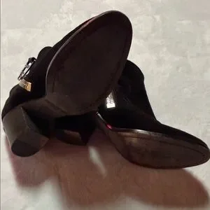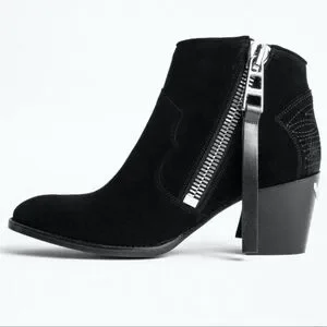 Elegant black ankle boots with a striking silver zipper. Perfect for adding a touch of sophistication.