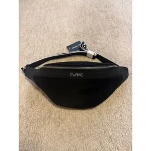 NWT Michael Kors Malone Fanny Pack Black Nylon MK Logo Strap Adjustable Vibes đź–¤