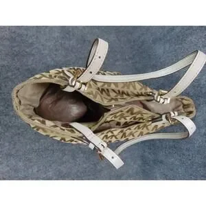 Michael Kors Tote Bag Jet Set MK Signature Logo Beige Brown Leather Trim