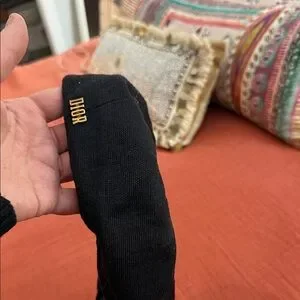 Stylish Dior beret in black. Features a gold logo accent. Perfect for elevating any look.