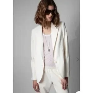 Zadig & Voltaire Vedy Bis Skull Ecru Single Breasted Blazer Size 36 Sm Corpcore