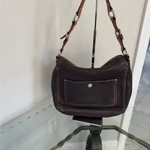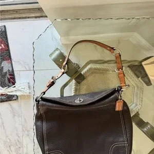 COACH VINTAGE CHELSEA Brown Pebble Leather Turn Lock Hobo Shoulder Bag NWOT. Gorgeous brown leather shoulder bag with brown leather trim. Purse has silver hardware, including turn lock that closes the bag. Large outer slip pocket, perfect for cellphone. Inside is a beautiful silky purple lining with two slip and one zipper pockets. Bag is in like new condition inside and out. This stunning bag will match with any outfit!
