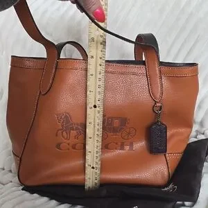 Stylish Coach tote in rich brown leather. Features iconic logo and spacious design. Perfect for daily use.