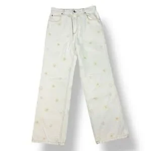 Designer Sandro High Rise Wide Leg Jeans Womens Size 24 White Denim