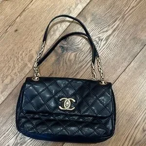 Chanel shoulder bag in black quilted leather. Gold chain strap and iconic logo detail. Stylish and versatile. GREAT everyday bag. Purchased from real real. Replaced leather part of the strap last summer. Some wear to the gold hardware as it’s an older bag but such a great bag for everyday. Cleaning out closet. PRETTY FIRM ON PRICE. Please ask questions.