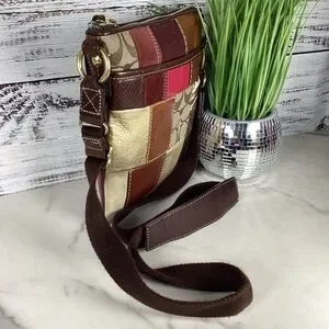 Coach Patchwork Leather Crossbody Bag in Brown, Pink, and Gold Fall Shoulder Pur