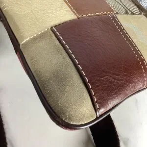 0257 Stylish patchwork design with rich leather textures. Features a mix of brown, pink, and gold tones. Ideal for a chic look.