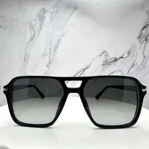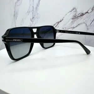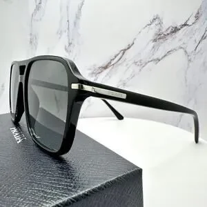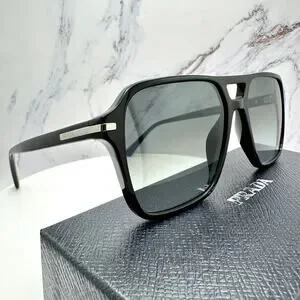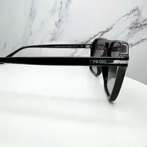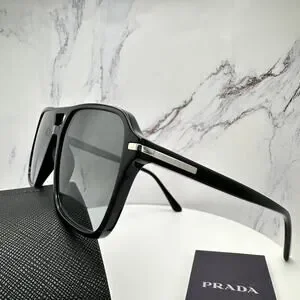NEW PRADA Sunglasses Black Aviator Pilot 55-17mm Grey Lens Silver Logo