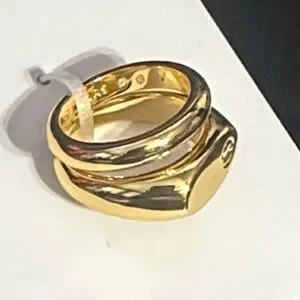 Chic gold-tone ring with signature logo detail. Bold and stylish design. Size 8