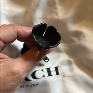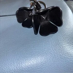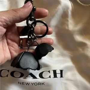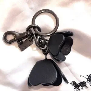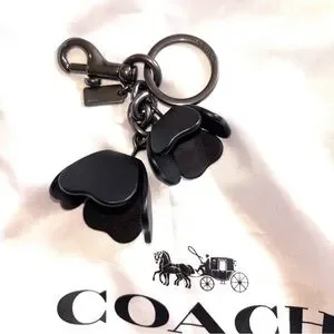 Coach Black Leather Floral Tea Rose Keychain Bag Charm