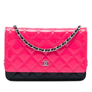 This tote features a quilted aged calf leather body, chain link straps, an open top with twist lock closure, an interior zip compartment, and interior zip and slip pockets. It carries an AB condition rating.