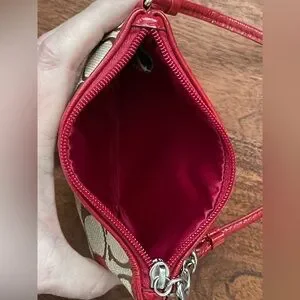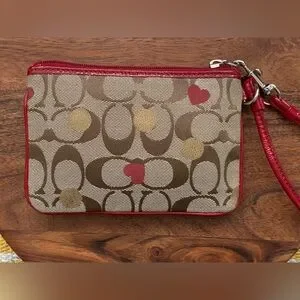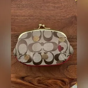 COACH Tan Signature Jacquard w/Gold Dot & Red Heart Set