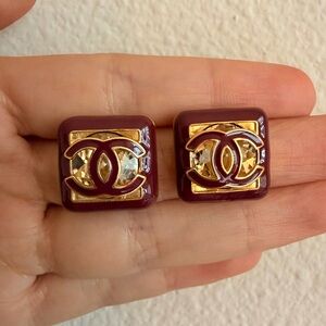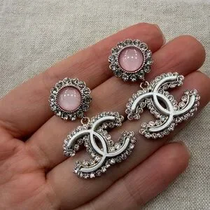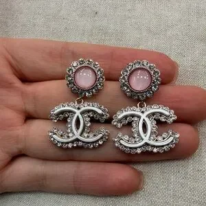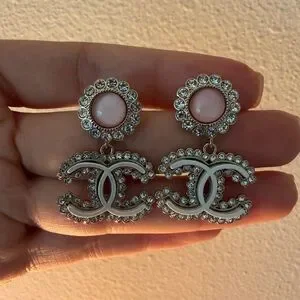💗Chanel Pink Cabochon CC Crystal Drop Earrings✨