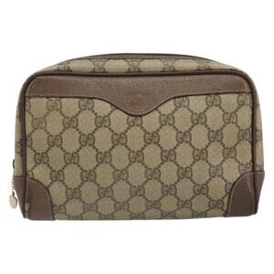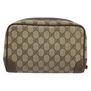 GUCCI GG Supreme Clutch Bag PVC Beige Auth hk3292