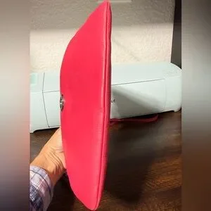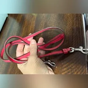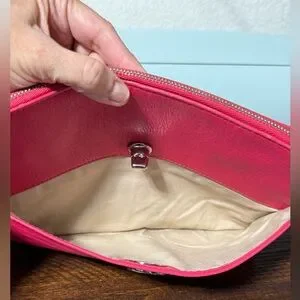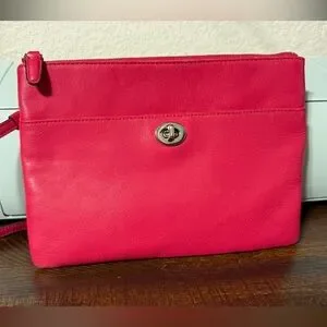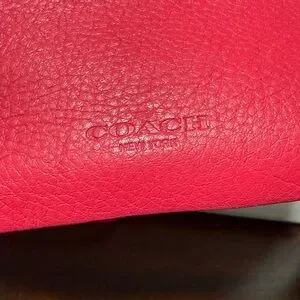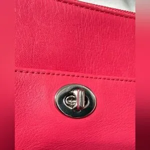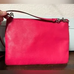 Good condition COACH Polly Pebbled Leather Crossbody Bag. Bright pink color. Measurements in pictures. One very faint stain on leather on back of bag, barely noticeable, see last picture.