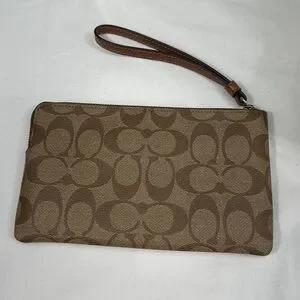 Nwt Coach Signature Large Corner Zip Stripe Wristlet Wallet Canvas Bag monogram