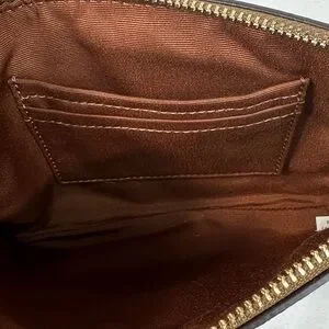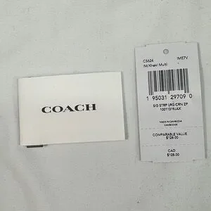 Up For sale is this New With Tags but detached Coach Signature Large Corner Zip Stripe Wristlet Wallet Canvas Bag.