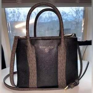 Michael Kors Black Pebbled Leather Satchel MK Logo Trim Crossbody NWOT