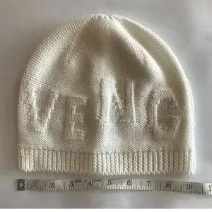 Givenchy Tonal Raised Logo Jacquard Knit Wool Beanie Hat Cream Off White NWT