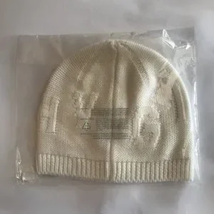 NEW NWT Givenchy Tonal Raised Logo Jacquard Knit Unisex Wool Beanie Hat in Off White, Cream
