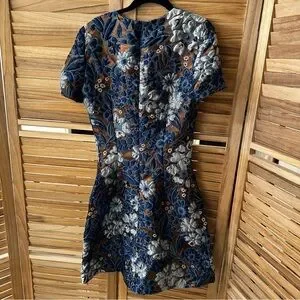 Burberry Prorsum Blue Metallic Short Sleeves Mini Dress size 4