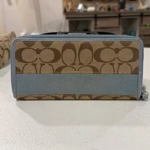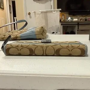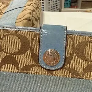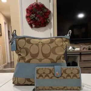 Coach Signature C Tan & Blue Striped Canvas and Leather Shoulder Bag and Wallet