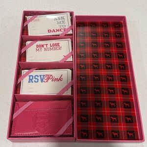 The bag has a stain on the blue striped portion of the bag as shown in the photos the wallet has very minor rubbing on the corners