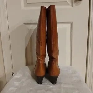 Vintage Celine Brown Leather Knee High Boots EU 39 Patina Distressed Old Money