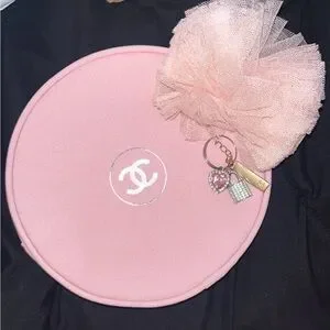 Chanel Beauty Pouch/ Makeup Travel Organize Bag w/ Chanel floral keychain