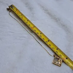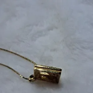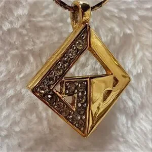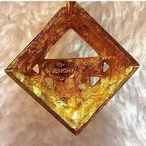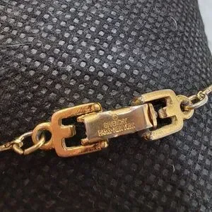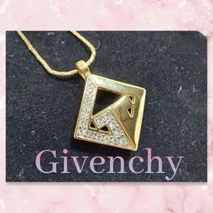 Beautiful gold tone Necklace and charm. Necklace chain is 16 in. The clasp in engraved with "Givenchy Paris New York" and has the Givenchy G's on either side of the clasp. The charm gold tone with 15 "diamonds" set on one side. I do not know if the diamonds are real or not. The back of the charm is also engraved with Givenchy. Charm Measures 1 in by 1 in.