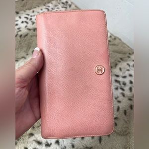 Elegant pink Chanel wallet.Features classic CHANEL logo. Perfect for any occasion.