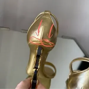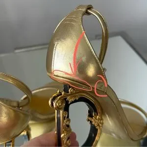 Step out in style with these stunning gold designer heels. Perfect for any occasion, these shoes offer both elegance and comfort.